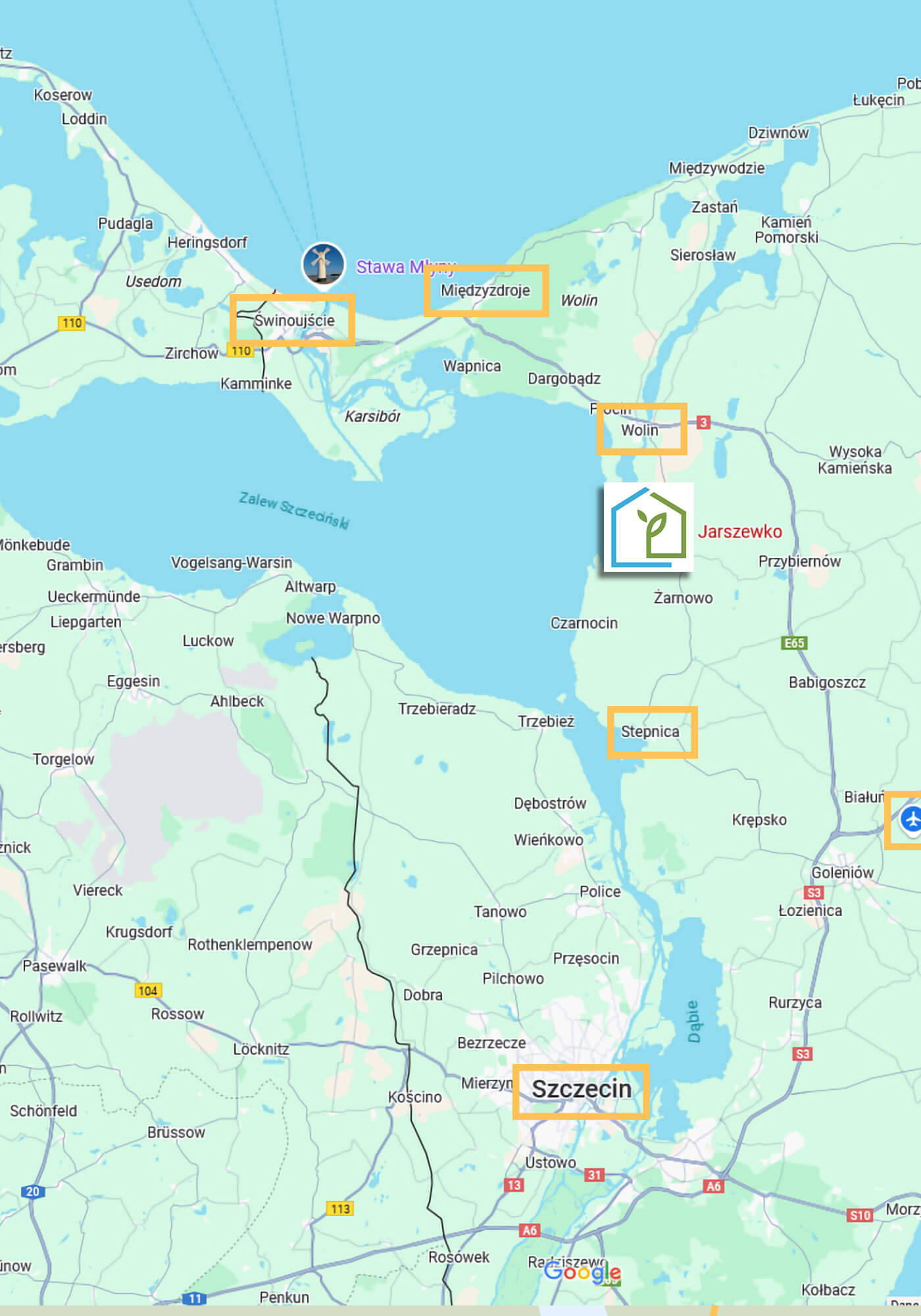 The location offers a unique combination of proximity to nature with access to the region’s key infrastructure. It’s a peaceful, green area perfect for those who appreciate tranquility and active recreation, while being very well connected to popular Baltic Sea resorts and the main transport hubs of Western Pomerania.